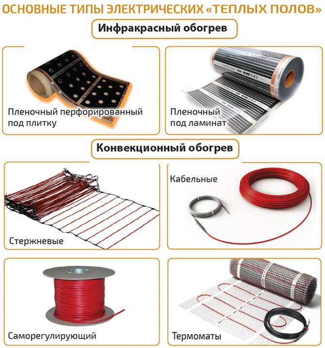 Lors de l'utilisation de l'électricité pour chauffer une surface, on utilise des appareils qui diffèrent par la manière dont la chaleur est transférée. Ce sont la convection et l'infrarouge. Les supports d'un tel transfert de chaleur sont des dispositifs à câble et à film.