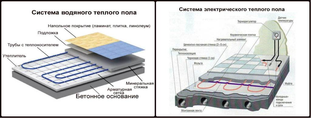 Le chauffage de l'eau est basé sur la pose de tuyaux en métal-plastique sous le revêtement de parement, à travers lesquels passe de l'eau chaude. Les canalisations, selon la nature de l'habitation, sont raccordées soit au chauffage autonome d'une maison individuelle, soit à un système commun s'il s'agit d'un immeuble à appartements.