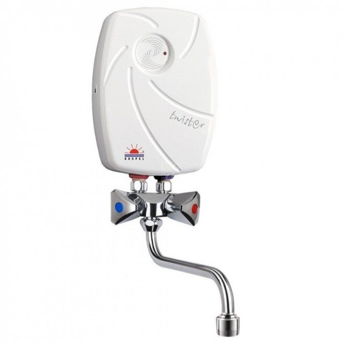 Le corps de l'appareil contient un petit réservoir, à l'intérieur duquel un ou plusieurs éléments chauffants sont installés. L'eau courante du système d'alimentation en eau pénètre dans le réservoir de l'appareil, où elle est chauffée par contact avec l'élément chauffant de l'appareil. De plus, le liquide déjà chauffé peut être fourni directement au robinet ou via le système d'alimentation en eau intra-appartement aux points de prise d'eau.