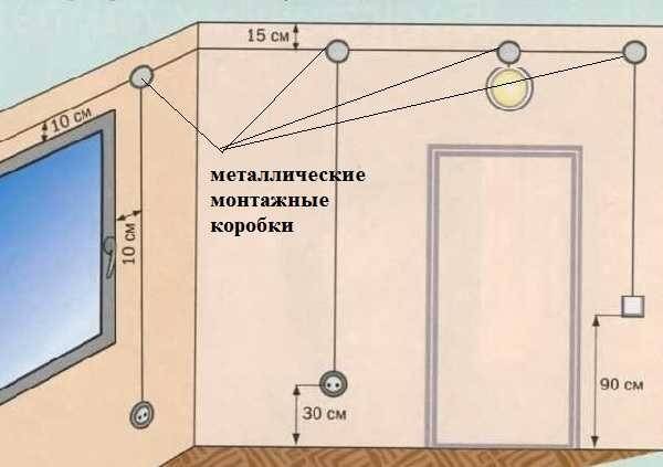 Troisièmement - si le câblage est posé sous le décor ou un plafond suspendu, il doit être monté dans des tuyaux métalliques. La pose à ciel ouvert n'est autorisée que dans les endroits non couverts où les fils restent visibles.