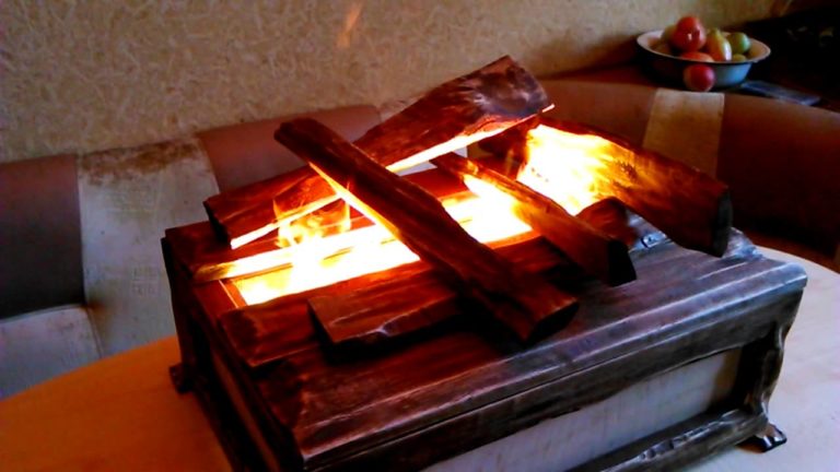 Par exemple, vous pouvez créer un foyer décoratif en utilisant des bûches artificielles faites maison et des lampes LED avec des lampes rouges, jaunes et blanches à commutation aléatoire.