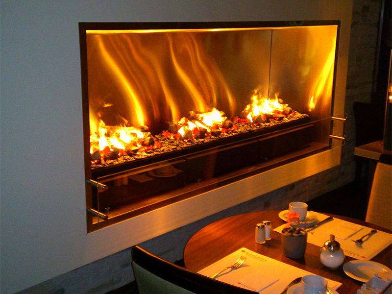 Outre le risque évident d'incendie, la source d'un feu ouvert fume presque toujours, ce qui affecte négativement l'apparence d'une cheminée décorative, surtout si elle est réalisée dans des couleurs claires.