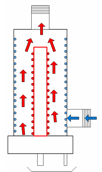 - Le liquide froid entre par l'un des trous;