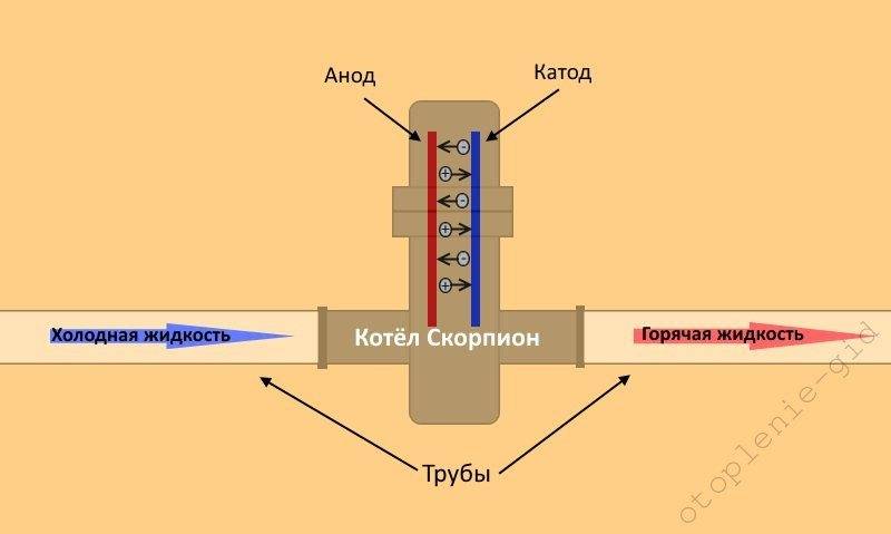 Ainsi, les électrodes installées dans le réservoir de la chaudière à ions ne participent pas directement au chauffage de l'eau et ne se réchauffent pas - les ions chargés positivement et négativement, divisés sous l'influence du courant électrique des molécules d'eau, sont responsables de l'augmentation de l'eau Température.