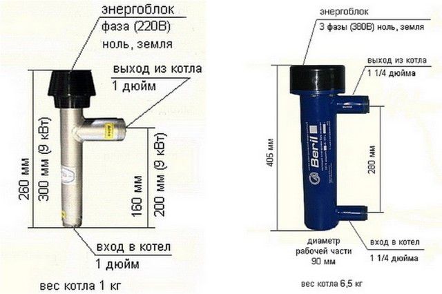 Ce type d'unité électrique pour chauffer la maison est totalement sûr, si une fuite de liquide se produit, il s'éteindra simplement. Les modèles d'électrodes sont très compacts (ressemble à un petit cylindre avec des buses), équipés de capteurs pour mesurer la température ambiante, contrôlés par automatisation.