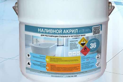 Comme son nom l'indique, le composant principal de la restauration dans ce cas est l'acrylique liquide. Puisqu'il n'est pas appliqué à la surface du bain avec un pinceau, mais en fait de l'acrylique est versé sur les murs, cette méthode est également connue sous le nom de "bain de remplissage".