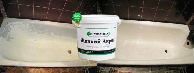 La restauration à faire soi-même des baignoires avec de l'acrylique liquide est assez budgétaire (bien que le coût du matériau soit légèrement supérieur à celui des compositions d'émail) et en même temps le moyen le plus simple et le plus abordable qui ne nécessite pas beaucoup d'efforts. Pour une telle restauration, vous n'avez pas besoin d'acheter d'outils supplémentaires, vous n'avez besoin que d'un petit récipient à partir duquel vous pouvez verser la composition.