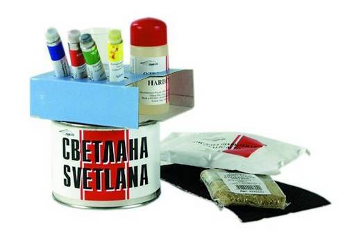 Le fabricant propose deux options: "Svetlana" et "Fantasy", de configuration différente. Ils sont constitués d'émaux certifiés à deux composants de densité moyenne, qui sont assez faciles à appliquer. Il est très pratique de travailler ces compositions avec un pinceau. En plus de l'émail, le kit comprend un moyen de préparer la surface du bain. Et aussi dans la composition de "Svetlana", vous pouvez trouver des pâtes teintantes pour donner la teinte souhaitée à l'équipement.