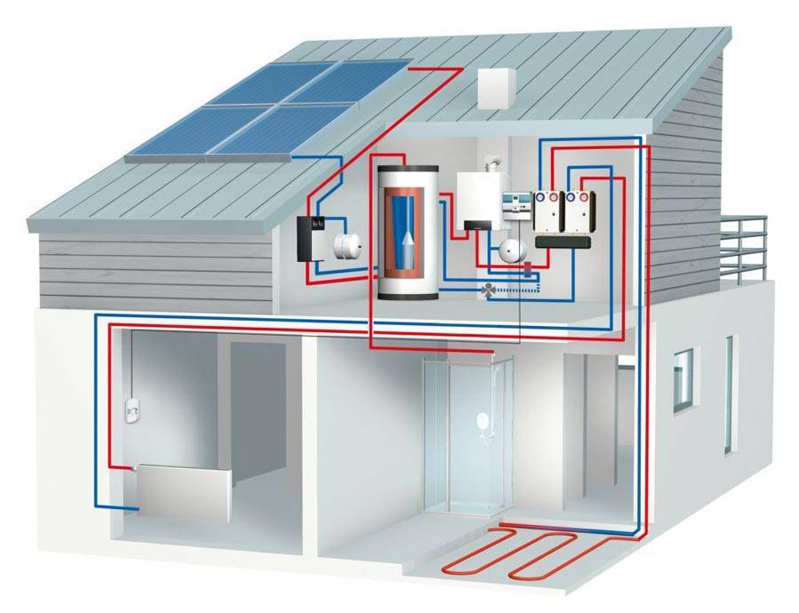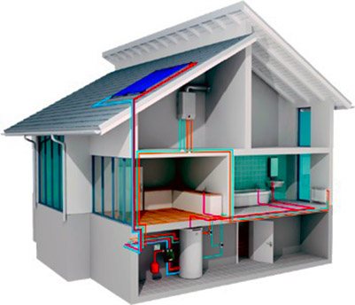 Le schéma de chauffage de la maison avec une chaudière à gaz.