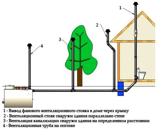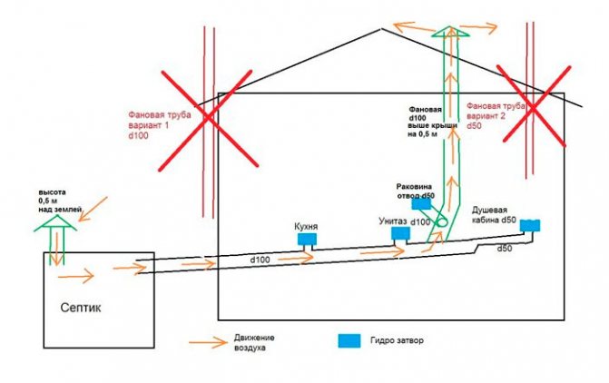 Si la fosse septique est située à proximité immédiate de la maison. Même si la maison est à un étage, mais que le réservoir d'eaux usées est trop proche, vous devez vous en assurer à l'aide d'une vanne de ventilateur.
