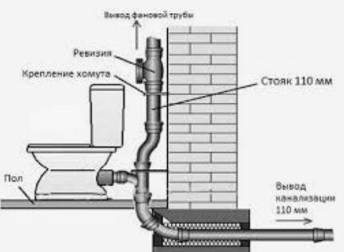 • lors de l'installation d'une colonne montante d'égout dans une maison privée d'un diamètre de 50 mm;