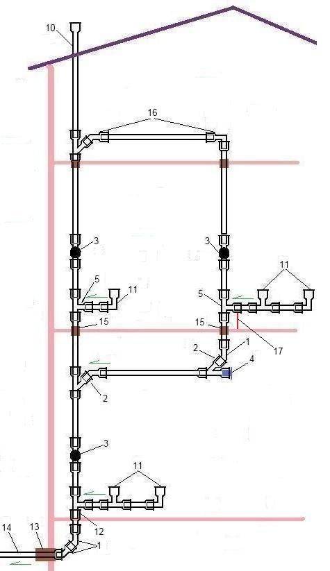 N'oubliez pas que la quantité d'eaux usées est affectée non seulement par le nombre d'appareils sanitaires, mais également par l'intensité de leur utilisation. S'il y a deux salles de bains dans le bâtiment, situées l'une au-dessus de l'autre, mais qu'une seule famille y vit, il est peu probable qu'un tuyau de ventilateur soit nécessaire, mais ce ne sera certainement pas superflu.