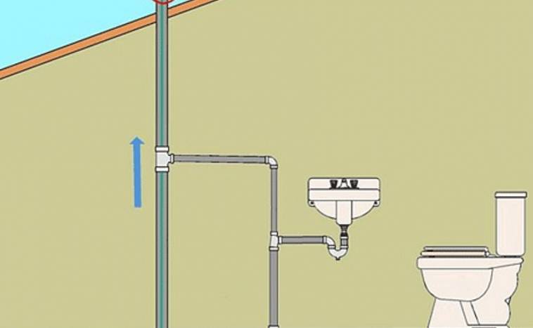 La ventilation est également importante, car elle remplit 2 fonctions à la fois - entrée d'air dans les zones raréfiées, gaz d'échappement. Le vide se forme plus souvent lorsque l'eau est évacuée dans la cuvette des toilettes et lorsque la pompe de vidange de la machine à laver est en marche. L'afflux d'air empêche la capture d'eau dans le siphon et la formation d'un joint d'eau, qui émet un son fort et désagréable. Une continuation de la colonne montante sur le toit est un tuyau de ventilateur.