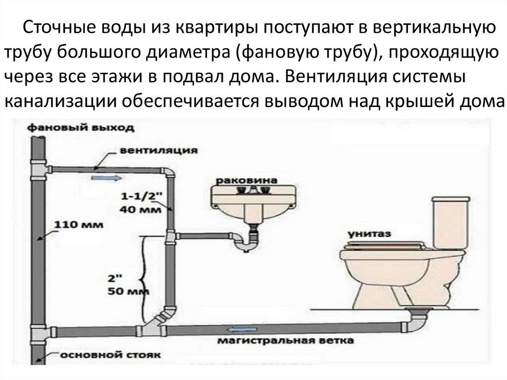 Le diamètre des tuyaux d'égout. Si le diamètre des tuyaux de la colonne montante d'égout est inférieur à 110 mm, les tuyaux d'égout pour l'égout doivent être installés, car il suffit de vider la cuvette des toilettes et la baignoire en même temps pour remplir tout le volume du colonne montante.