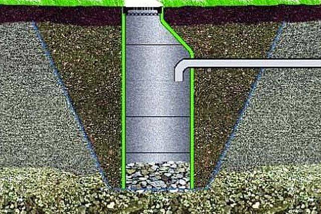 La profondeur du puits d'absorption dans le sol doit être au moins deux mètres, et l'épaisseur de la couche filtrante est d'au moins 30 cm