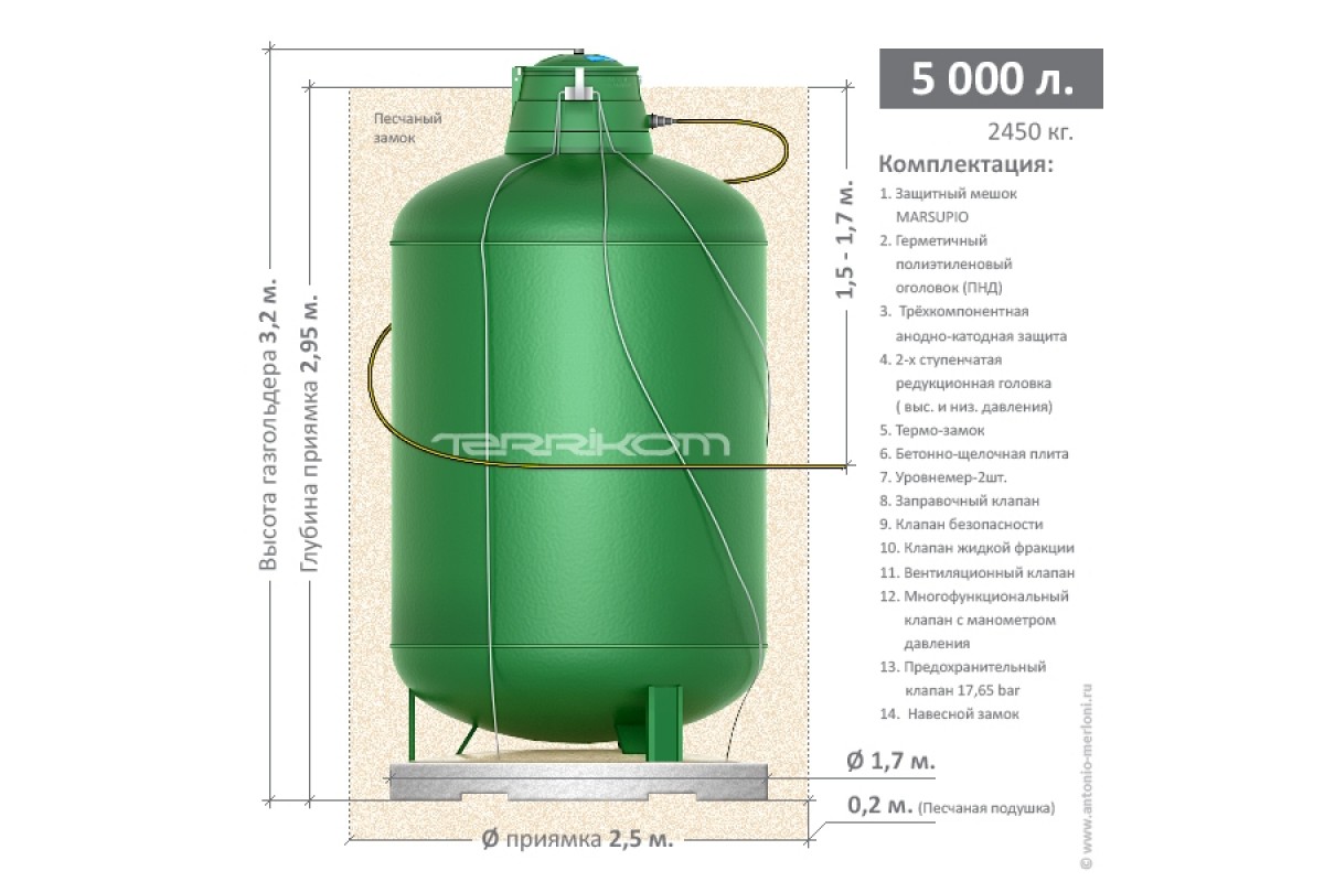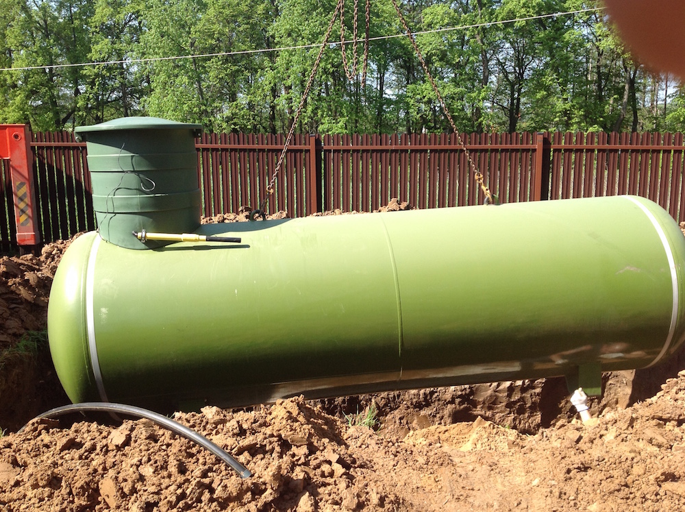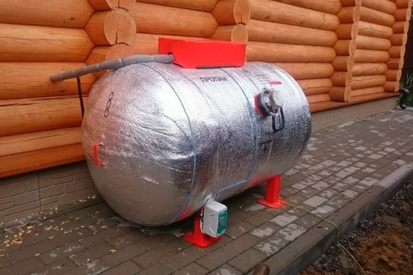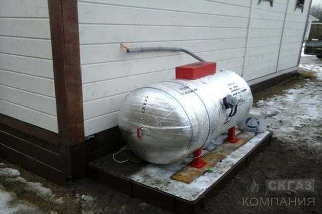 installé dans une buanderie ou une extension compacte du chalet, et si cela n'est pas possible, il est installé sous terre à une profondeur considérable (selon le volume - jusqu'à 4-5 mètres).Les dimensions et les spécificités de l'exécution d'un réservoir vertical pour gaz liquéfié impliquent une quantité importante d'excavation, ce qui affecte le coût final d'installation d'un tel réservoir de gaz.