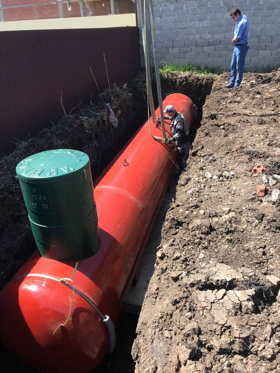 Un grand conteneur stationnaire doit être livré à terre. Il va falloir effectuer des travaux de déchargement, creuser une fosse. La dernière partie de l'article décrit en détail les étapes de travail nécessaires. Mais vous pouvez le faire différemment, achetez une citerne à gaz clé en main pour une maison privée :