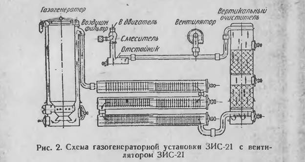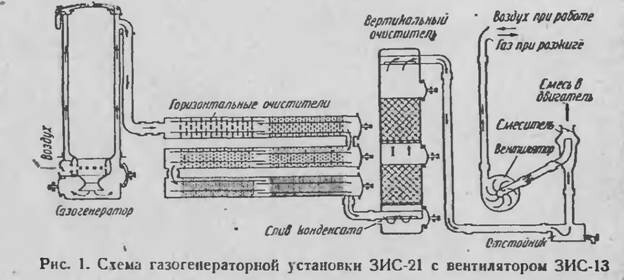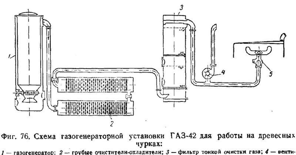 À cette époque, le bois de chauffage était plus abordable que les produits pétroliers. Par conséquent, les équipements soviétiques et étrangers étaient équipés de générateurs de gaz. Sur gaz de bois travaillé : citernes, voitures et véhicules automobiles.