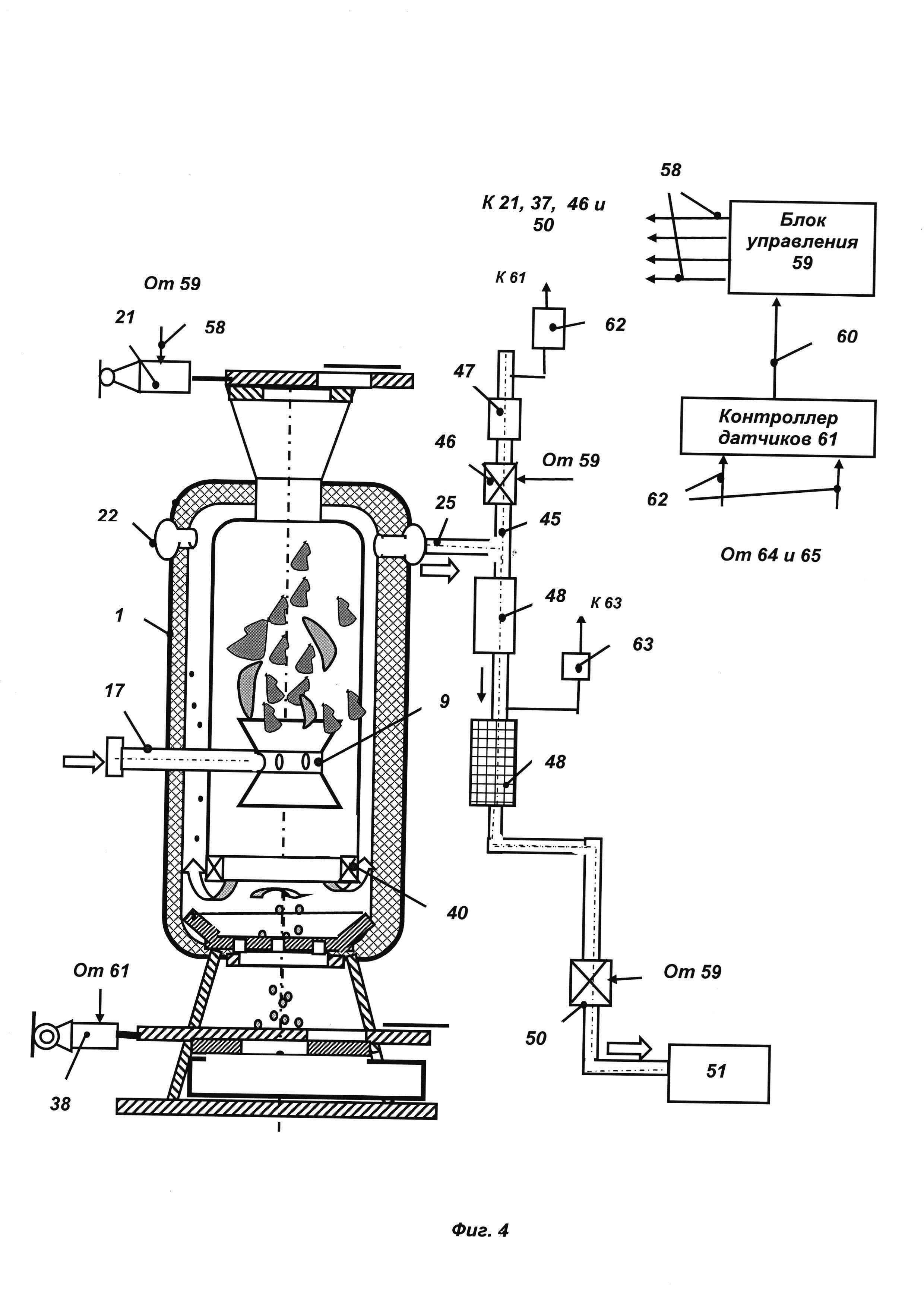 - Dans la partie supérieure de la chambre de chargement, la température est au niveau de 150-200°C. Du fait qu'une canalisation annulaire est organisée à travers laquelle passe le gaz chaud qui vient de sortir du générateur de gaz, le bois de chauffage y est séché.