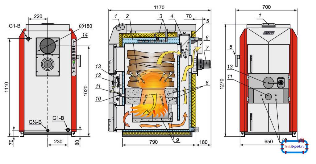 Malheureusement, la production de gaz n'est pas possible sans ventilation forcée. Par conséquent, une chaudière à bois pour le chauffage est considérée comme dépendante de l'énergie, car un ventilateur est utilisé. Pendant les surtensions, il est impossible de laisser la chaudière sans surveillance, le problème est donc résolu en connectant une alimentation sans coupure - un appareil qui fournit l'électricité accumulée.