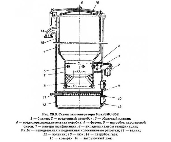 La question fondamentale est le bon fonctionnement du générateur de gaz.Pour que l'unité fonctionne avec un rendement élevé, il est nécessaire d'ajuster soigneusement le niveau d'alimentation en air (en tenant compte de la teneur en humidité du carburant), l'intensité des gaz d'échappement, etc. Il est souhaitable de fabriquer un générateur de gaz selon des dessins professionnels, dans le respect de toutes les tailles et proportions.