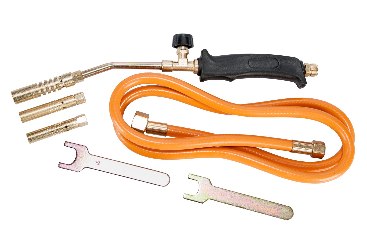 Un brûleur très simple et étroit qui se porte sur une cartouche de gaz. Le reglitor et la buse étroite vous permettent d'accéder aux bonnes pièces dans des endroits étroits. Il n'y a pas d'allumage piézo, mais tout semble de haute qualité - du métal et un grand régulateur d'alimentation en gaz sont tout autour. Une bouteille de butane vous permet d'obtenir une température d'environ 1300 degrés Celsius à partir de ce brûleur.