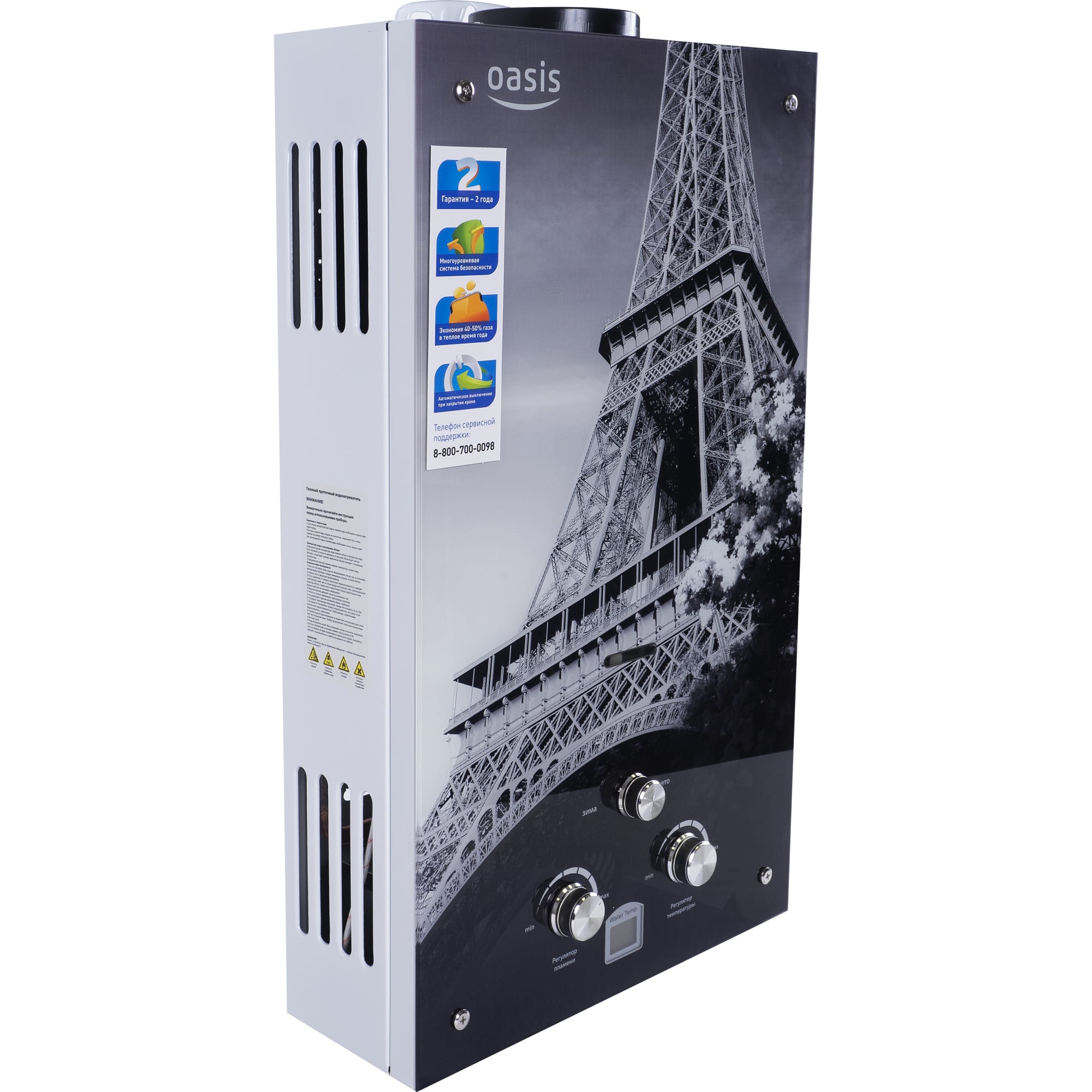 L'équipement moderne de chauffage de l'eau au gaz Oasis est équipé d'un arrêt automatique de protection de l'alimentation en gaz