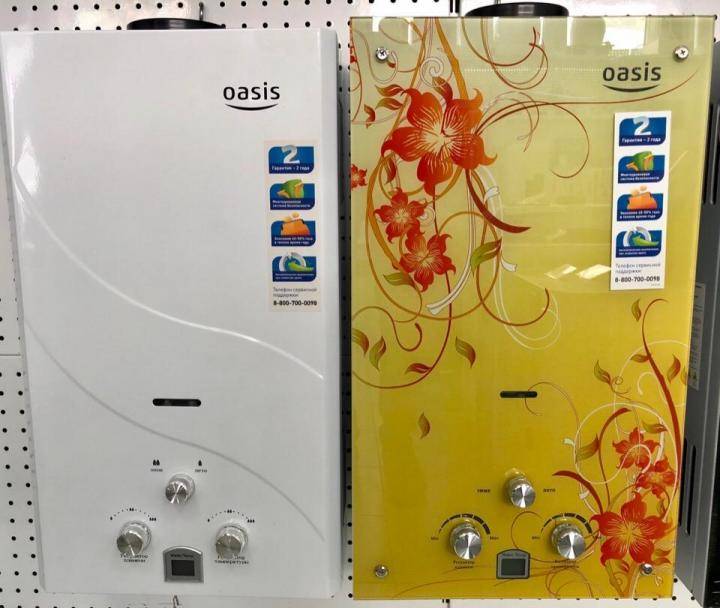 Il convient de noter que les chauffe-eau Oasis sont fabriqués de telle manière qu'ils ont des capacités d'eau bouillante différentes. De plus, on peut dire que l'appareil est à gaz Les colonnes Oasis sont fabriquées en fonction du débit taper. Une telle colonne peut produire de 5 à 15 litres d'eau chaude en 1 à 2 minutes.