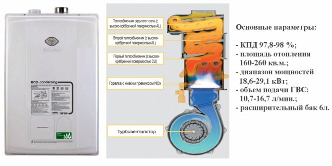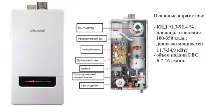 L'efficacité des chaudières Kiturami selon les instructions est de 92,5%. Le coût est de 38 à 42 mille roubles.