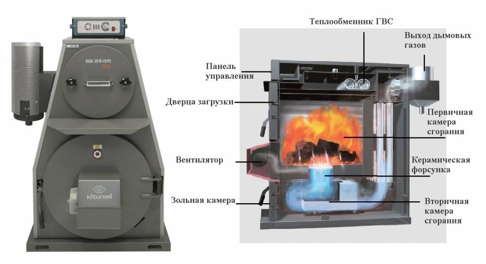 5. Les appareils à biocombustibles Kiturami sont conçus pour utiliser des matières premières solides et liquides. Dans ce cas, le processus de combustion passe automatiquement à un autre type de combustible lorsque le premier est complètement épuisé. L'efficacité est supérieure à 92 %.