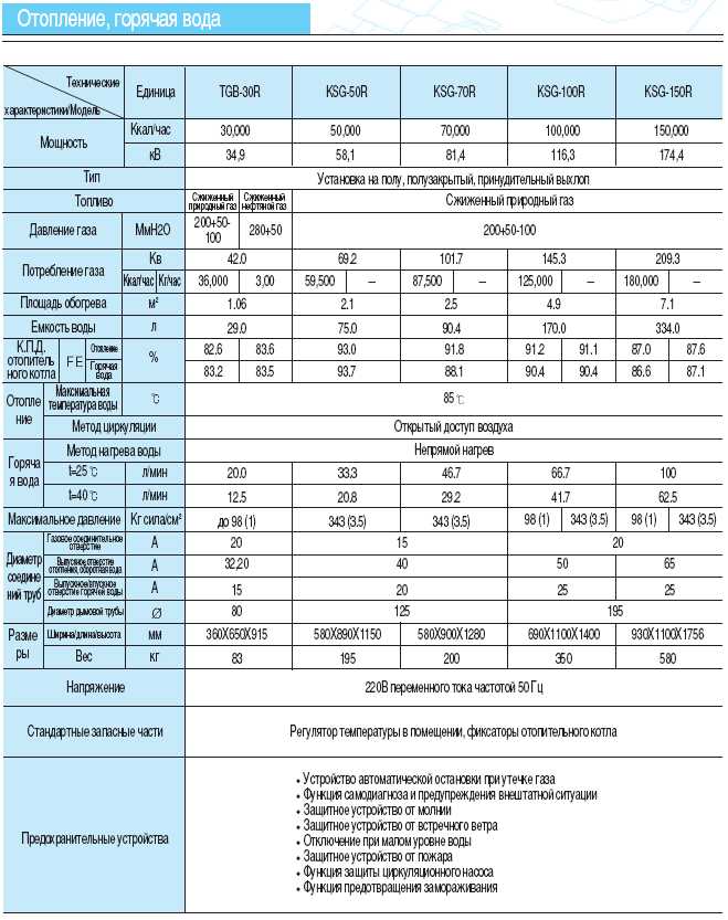 Les principales caractéristiques techniques des chaudières à gaz kiturami: