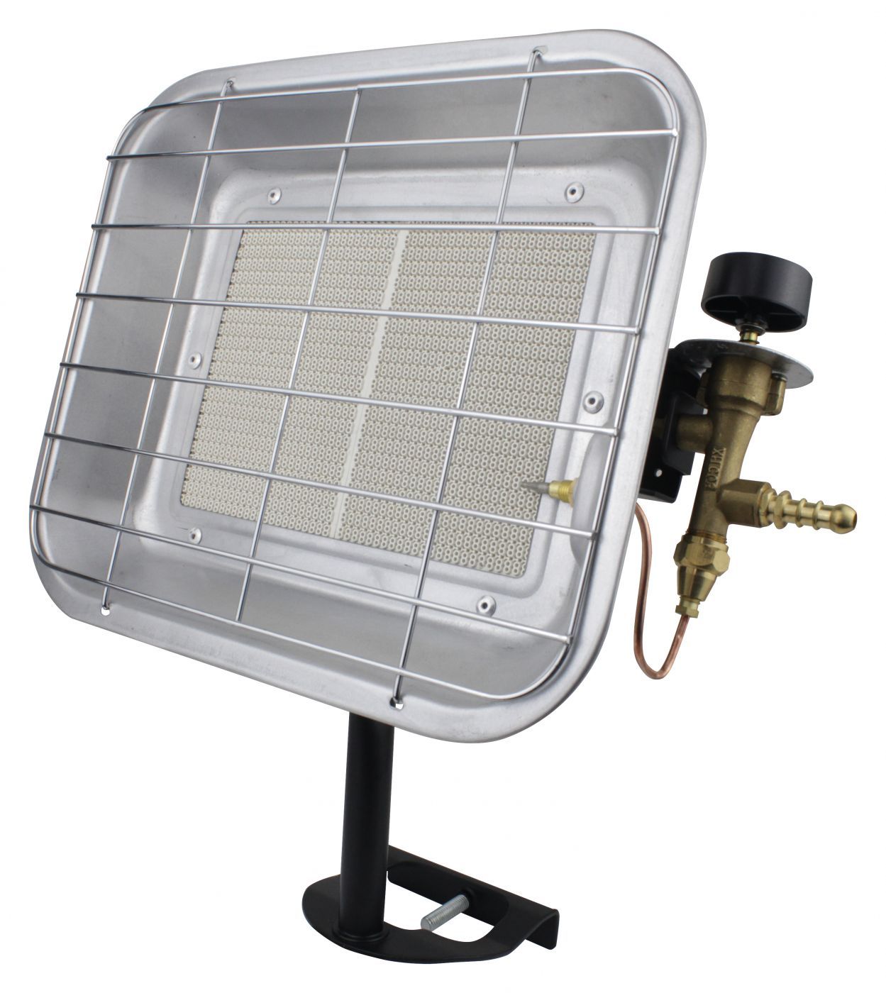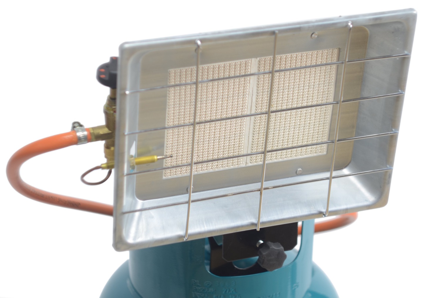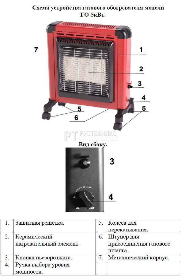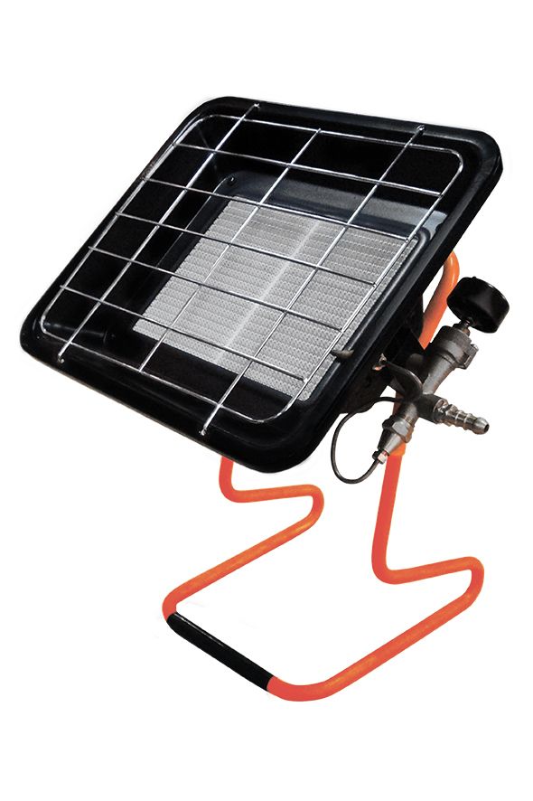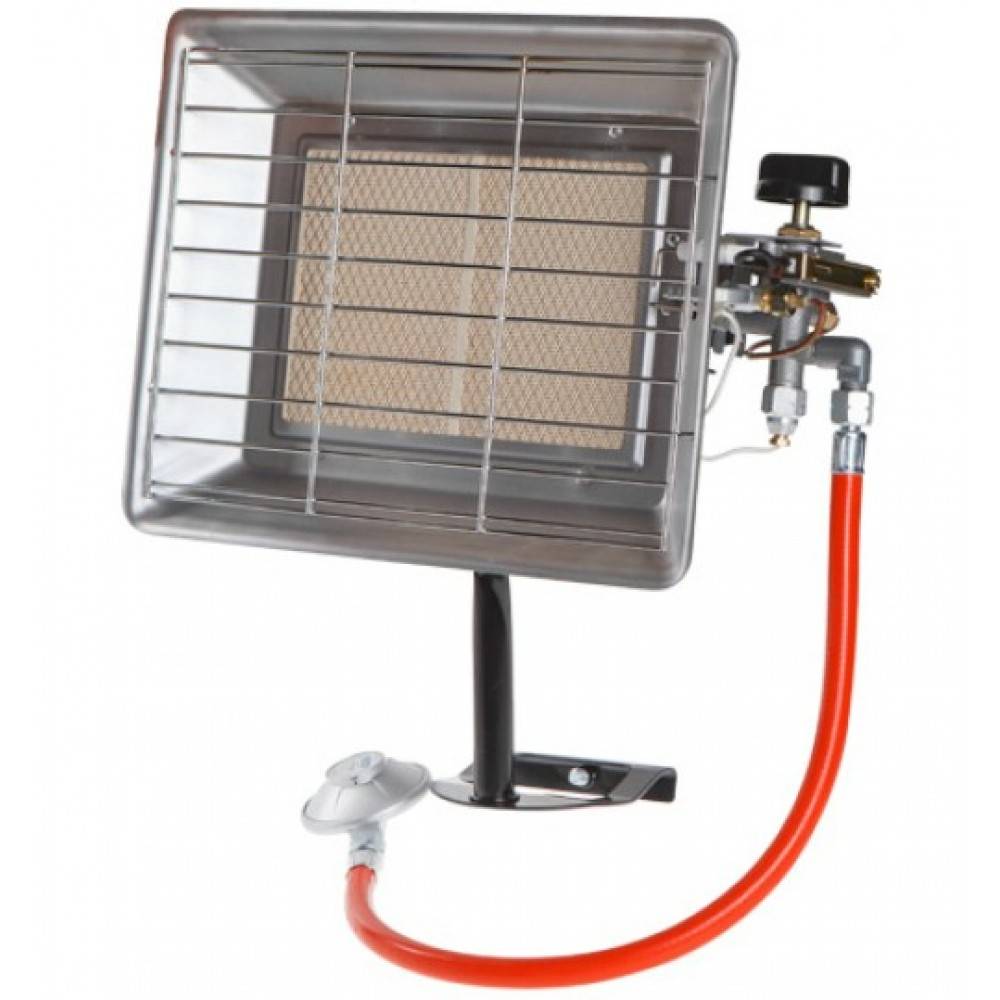 La bouteille de gaz doit être installée à côté à une distance de sécurité. Le transfert de chaleur d'un brûleur sans flamme s'effectue de toutes les manières possibles : transfert de chaleur, transfert convectif des masses d'air et rayonnement infrarouge. La puissance de chauffage est généralement contrôlée manuellement par une vanne. Un tel appareil de chauffage est assez rapidement capable d'augmenter la température de l'air dans une pièce, un garage ou un petit atelier.