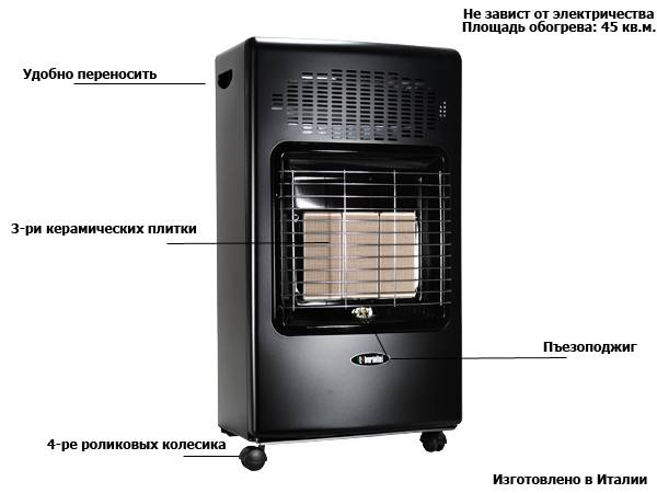 - Autonomie. Les appareils fonctionnant sur une bouteille de gaz peuvent non seulement être installés n'importe où dans la pièce, mais également emportés avec vous dans la nature;