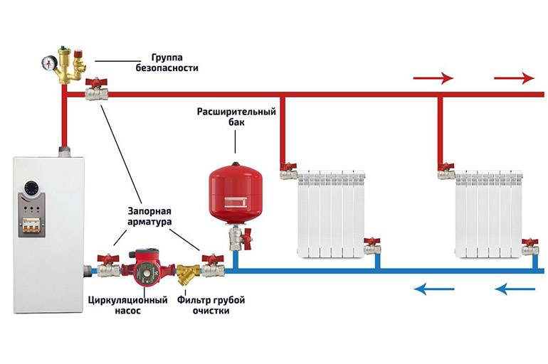 Si le modèle de la chaudière électrique de chauffage n'était pas initialement équipé d'une unité automatique qui contrôle le fonctionnement du système, la tuyauterie correcte est d'une grande importance pour l'appareil. Il vous permettra d'atteindre une efficacité maximale même lors de l'installation d'une chaudière peu puissante.