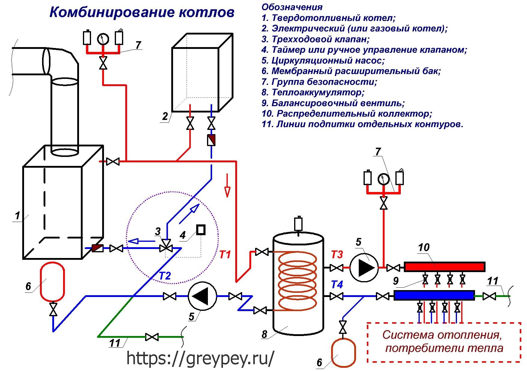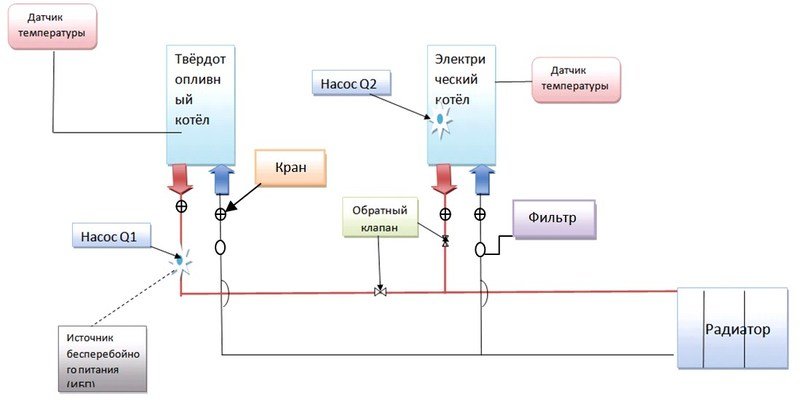 La création d'un circuit pour deux chaudières de chauffage est associée à une décision évidente de maximiser la fonctionnalité de divers types de systèmes de chauffage pour une maison privée. A ce jour, plusieurs options de connexion sont proposées :