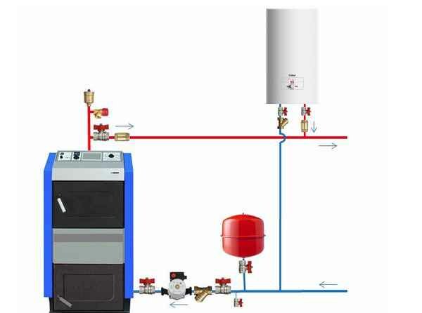 L'option la plus difficile techniquement, car elle nécessite une préparation minutieuse du système de ventilation et des locaux pour les installations globales et à risque d'incendie. Avant l'installation, lisez les règles d'installation séparément pour les chaudières à gaz et à combustible solide, en choisissant la meilleure option. De plus, le chauffage du liquide de refroidissement est difficile à contrôler dans une chaudière à combustible solide et un système ouvert est nécessaire pour compenser la surchauffe, dans lequel la surpression est réduite dans le vase d'expansion.