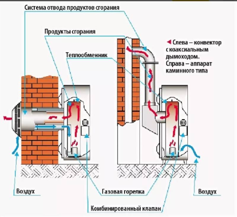 La chambre de combustion peut être fermée ou ouverte. Ces dernières années, les modèles à chambre de combustion fermée sont devenus les plus populaires, ce qui garantit une efficacité maximale et une sécurité totale du fonctionnement de l'équipement. Les convecteurs à chambre de combustion fermée peuvent avoir un tuyau coaxial au lieu d'une cheminée classique, qui prend simultanément l'air frais de la rue et évacue efficacement les produits de combustion vers l'extérieur. Le seul inconvénient des convecteurs à brûleur fermé est leur coût élevé.
