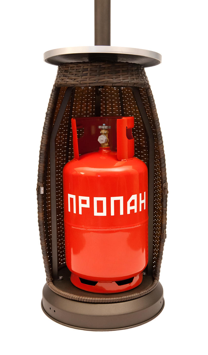L'appareil est alimenté au gaz à partir d'une bouteille de 27 litres, qui est placée à l'intérieur de l'appareil de chauffage. Vous pouvez installer une bonbonne de 50 litres à proximité.