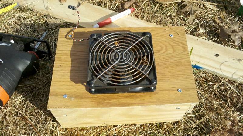 - Montez le ventilateur à l'intérieur de la boîte avec des boulons et un support.