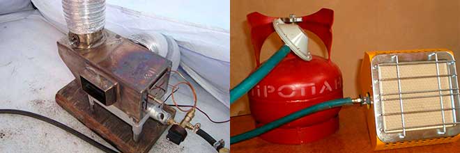 Aujourd'hui, les radiateurs infrarouges sont disponibles pour l'auto-fabrication, qui sont les plus sûrs et les plus efficaces en fonctionnement. Si un équipement plus puissant est nécessaire, vous pouvez assembler un refroidisseur d'huile, un réchauffeur d'alcool, un pistolet thermique, une batterie et un appareil à gaz.