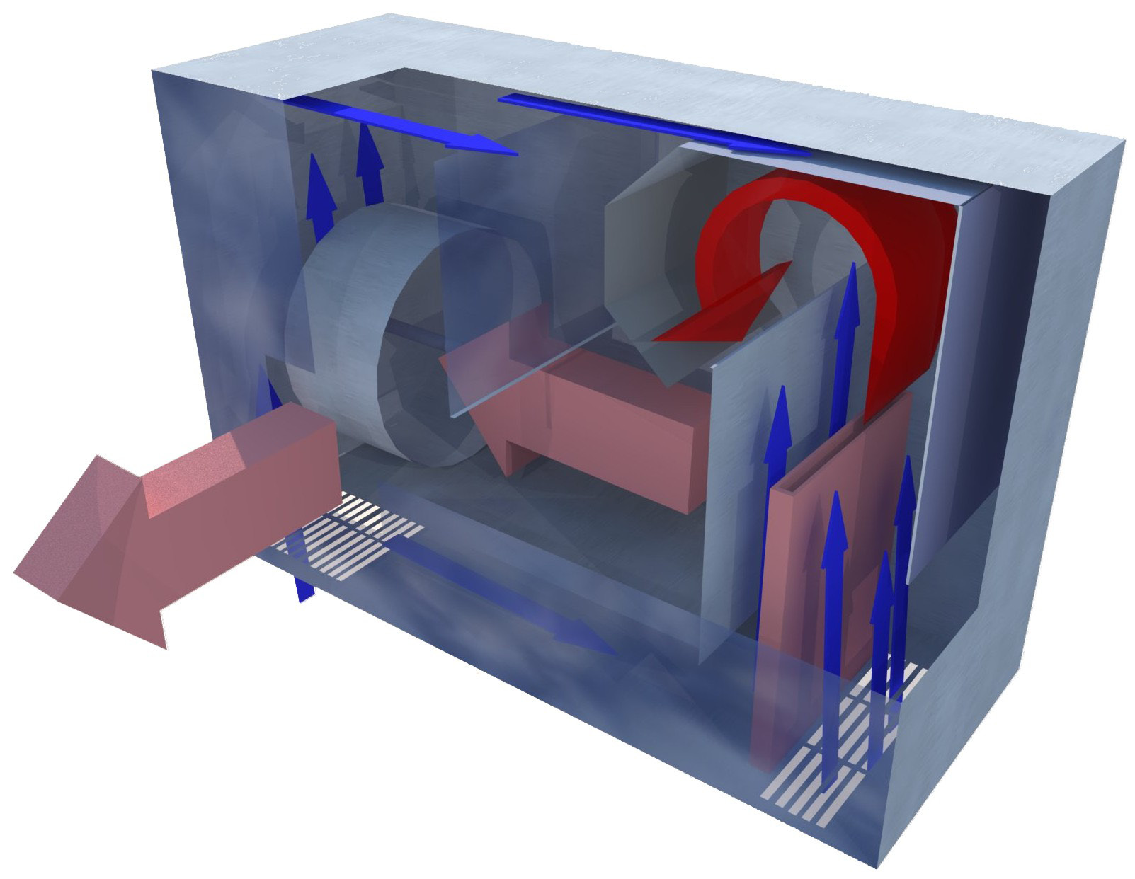• l'air chauffé est introduit dans la pièce à travers les grilles et la réchauffe progressivement.