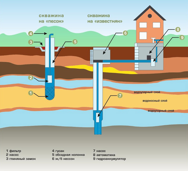 - La profondeur de l'aquifère. Cette valeur peut être déterminée par des sondages d'essai ou après des travaux géodésiques sur l'analyse de la zone.