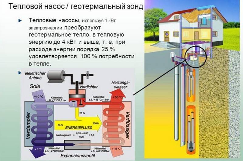 La mise en œuvre de puits géothermiques pour l'organisation du chauffage autonome est la meilleure option, ce qui peut réduire considérablement les coûts du propriétaire. Le puits est foré à une profondeur de 30 à 50 mètres, ce qui augmente l'efficacité du chauffage, car à de grandes profondeurs, la température de la terre sera plus élevée qu'à la surface elle-même.