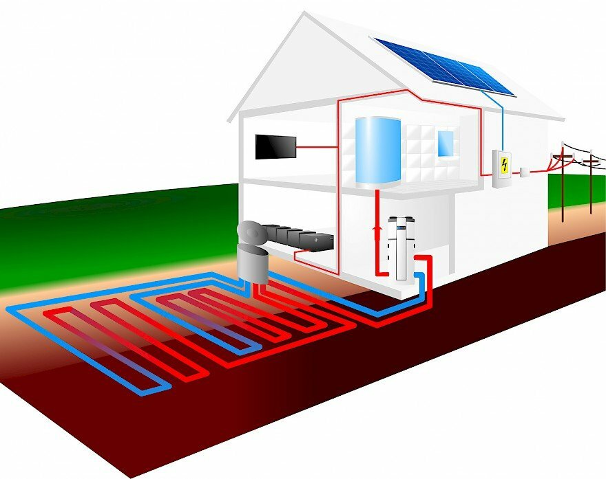 Cependant, dans ce système, la majeure partie sera cachée sous terre. Le chauffage à l'énergie du sol est la présence d'un puits et d'un échangeur de chaleur. Dans le logement, il vous suffit de mettre un appareil qui génère de la chaleur - généralement, il ne prend pas beaucoup de place.