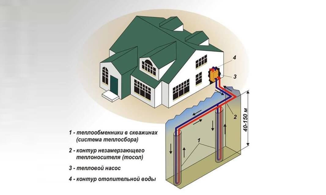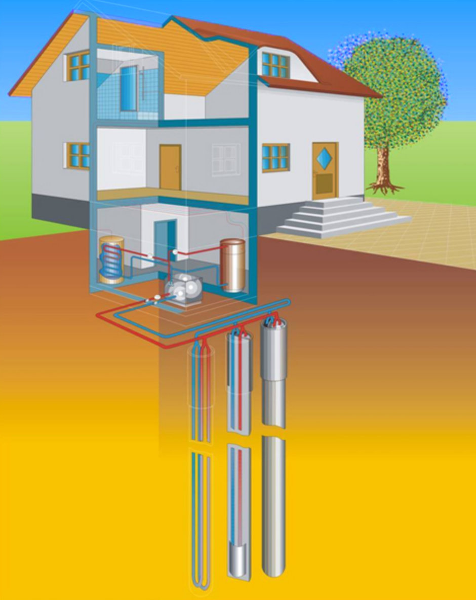 C'est un moyen plus long d'organiser le chauffage d'une maison privée à partir du sol. Les pipelines sont situés verticalement, dans des puits spéciaux