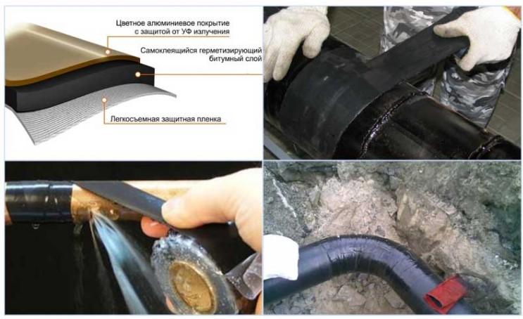 Pour que ce matériau ait l'effet escompté, les tuyaux doivent être nettoyés de la poussière et de la saleté, puis soigneusement essuyés ou séchés. Un apprêt est appliqué immédiatement avant de coller le ruban. Après cela, le ruban est enroulé autour du tuyau en spirale, étroitement, sans plis avec un demi-chevauchement.