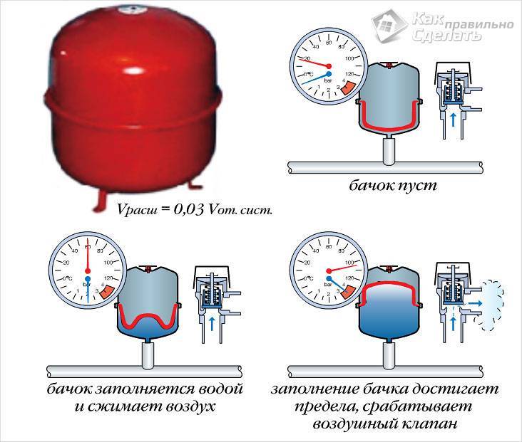 Les accumulateurs hydrauliques sont souvent confondus avec les vases d'expansion, même en dépit des problèmes fondamentalement différents que ces dispositifs résolvent. Un vase d'expansion est nécessaire dans les systèmes de chauffage et d'eau chaude, car le liquide de refroidissement, se déplaçant dans le système, se refroidit inévitablement et son volume change. Le vase d'expansion est configuré avec un système «froid», et lorsque le liquide de refroidissement se réchauffe, son excès, qui se forme en raison de l'expansion, a quelque part où aller.