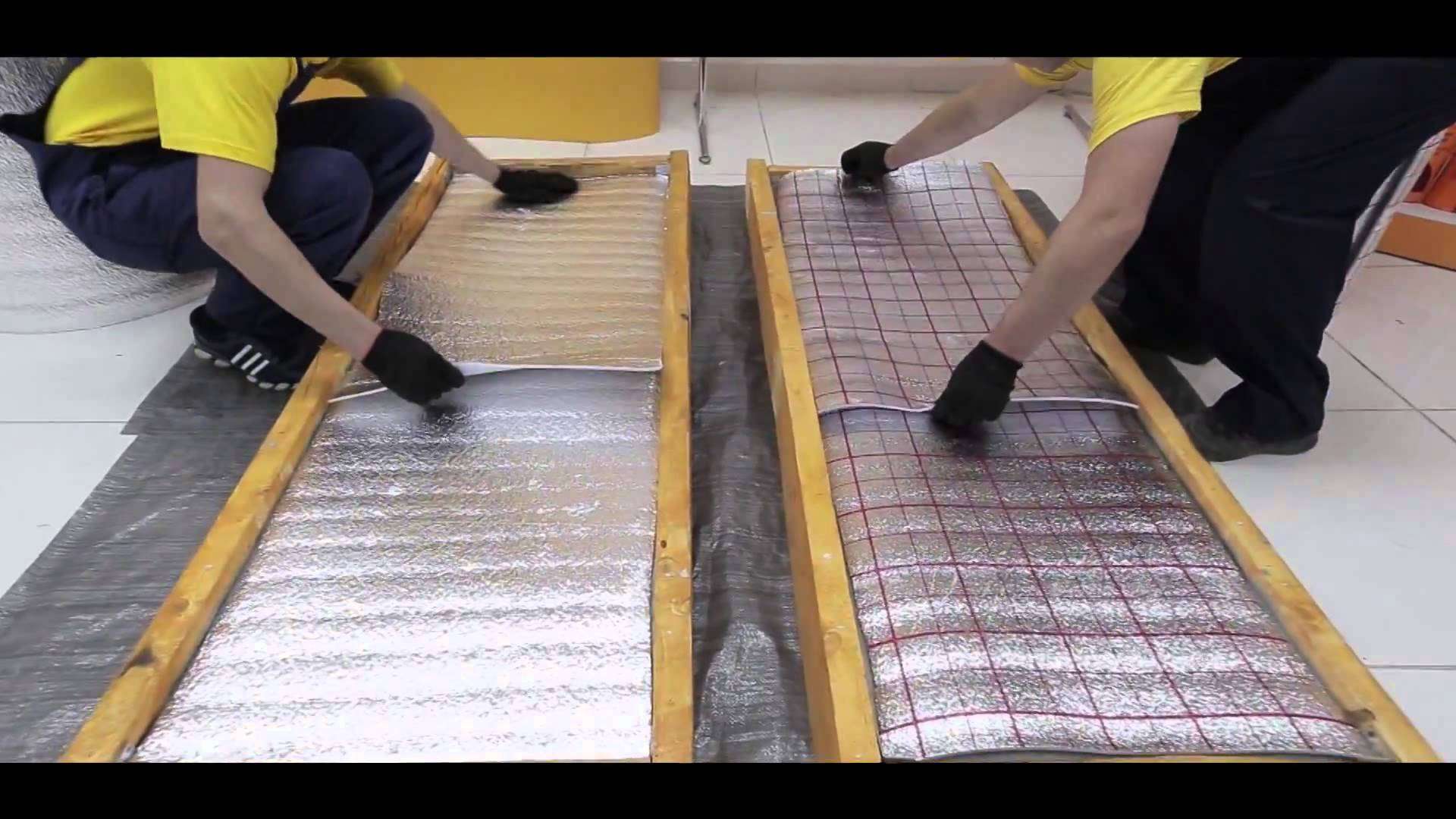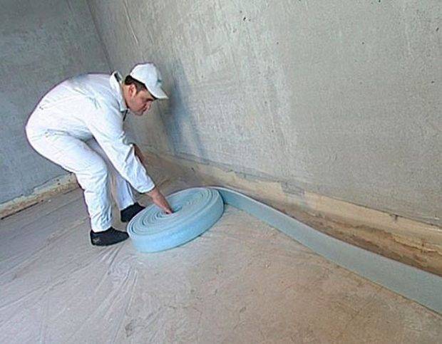 Béton le sol doit être nettoyé de la saleté et la poussière. Il ne doit pas y avoir de débris de construction sur la surface. (Cela pourrait endommager l'isolant).Le matériau en rouleau autocollant est posé en bandes avec un chevauchement égal à la largeur du bord avec de la colle. Un chevauchement de 15-20 cm est fait sur les murs.