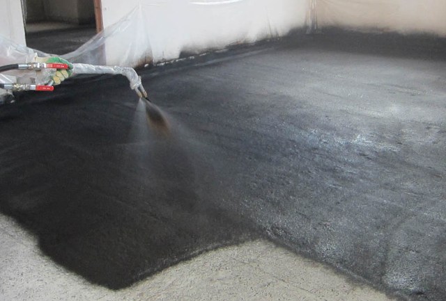 L'étanchéité coulée est la plus haute qualité possible. Il est réalisé en versant des solutions d'asphalte liquide sur le sol en deux ou trois couches.
