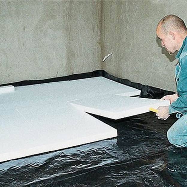L'imperméabilisation à la colle est utilisée si l'humidité dans le sous-sol est faible et le seuil d'eau souterraine est bas. En tant que matériau d'imperméabilisation encollage, on utilise généralement un matériau de toiture, de l'hydroisol, du folgoizol ou du papier de toiture. Des matériaux en feuilles polymères peuvent également être utilisés. Une sorte de tapis multicouche est formé à partir d'eux, tandis que toutes les couches sont collées ensemble. Le matériau est collé sur une couche de mortier pré-apprêtée jusqu'au coulage final de la chape.